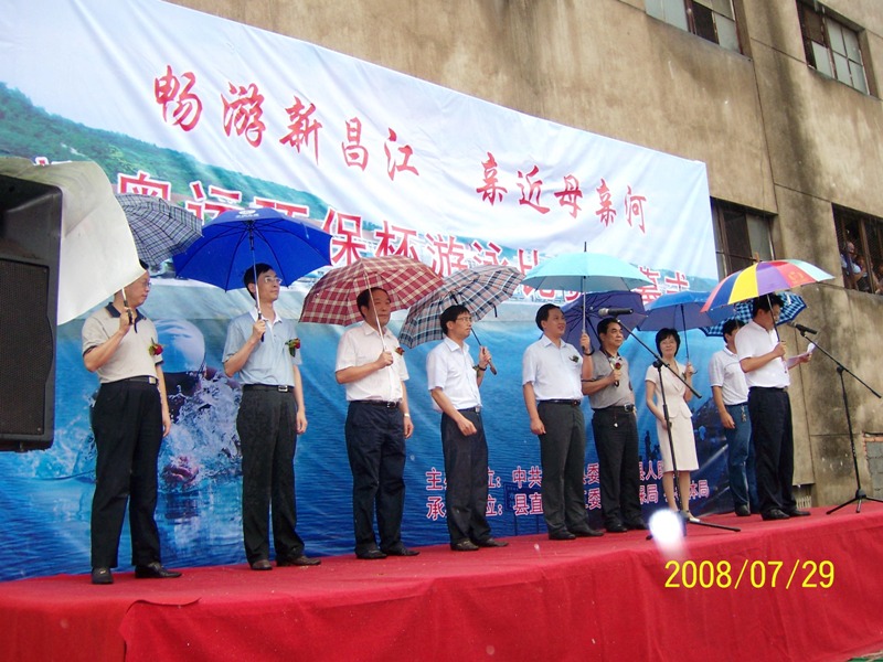 7月29日下午,由中共新昌縣直屬機關工作委員會、新昌縣環保局、新昌縣教育體育局和新昌縣縣級機關工會聯合會共同主辦的“暢游新昌江、親近母親河”迎奧運“環保杯”游泳比賽如期在新昌江舉行。各相關領導出席了開幕式,我公司由張麗娃副總經理帶隊參加了本次比賽。雖然下著雨,但參賽隊員和聞訊而來的觀看群眾熱情高漲。我公司張麗娃副總經理憑著如專業游泳運動員般的耐力、毅力和技巧,一舉獲得了女子80米蛙泳冠軍。