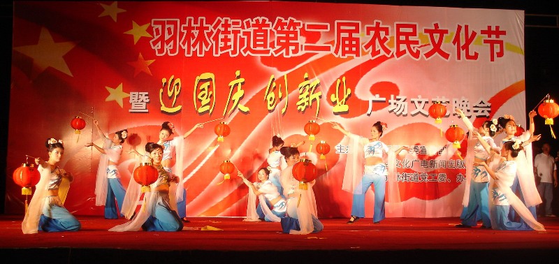 2008年9月24日晚,在新昌江濱公園舉辦了羽林街道第二屆農(nóng)民文化節(jié)暨迎國慶創(chuàng)新業(yè)廣場文藝晚會。本次活動共有14個節(jié)目,我公司積極參與了本次活動,同時參與的單位還有新昌制藥、新和成、皮爾軸承等企事業(yè)單位。活動現(xiàn)場氣氛熱鬧非凡,舞臺正前方是兩排嘉賓席,在座的有縣里的領(lǐng)導(dǎo)等,整個舞臺被圍的水泄不通,廣場上人頭攢動,密密麻麻全是前去欣賞活動節(jié)目的觀眾。節(jié)目一個接一個,甚是精彩,輪到我公司時,一曲春江花月夜,優(yōu)美的旋律加上我們京新姑娘柔美整齊的舞姿,令全場觀眾驚嘆!