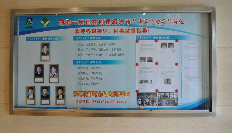 11月23日,研究一所接受了紹興市“青年文明號”檢查組2011年在爭創(chuàng)的“市級青年文明號”的驗(yàn)收。