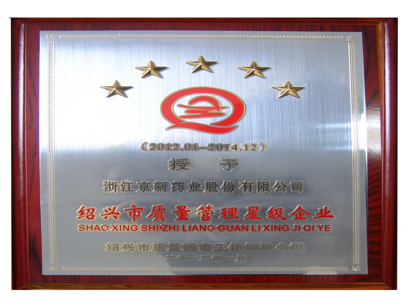 3月15日,紹興市質量強市工作領導小組辦公室頒發了首批“紹興市質量管理星級企業”獎牌,我公司榮獲五星級企業殊榮。這是紹興市第一次針對企業質量管理水平開展的評價活動,目的是激勵企業學習、應用先進的質量管理理念、方法和技巧,引導廣大企業走質量強企業的發展道路。(黃國寶)