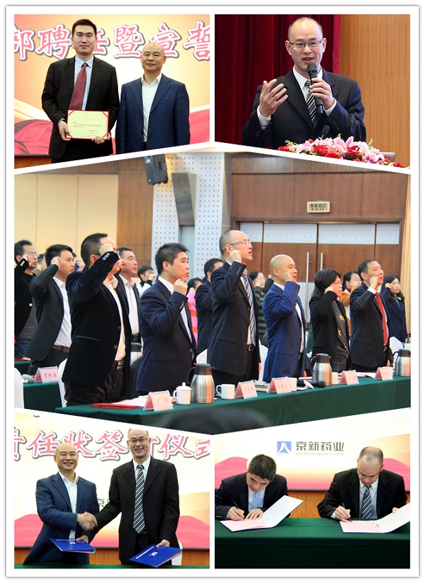 會議舉行了2016年公司干部聘任和宣誓儀式,呂董親自為每一位干部頒發了滿載責任與使命、寄托信任與希冀的聘任書,全體干部莊嚴宣誓,承諾以身作則,帶領全體京新人解放思想,改革創新,實現京新二次騰飛!