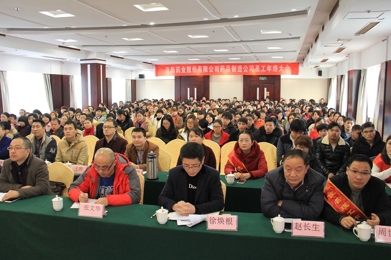 1月14日上午,藥品制造公司員工年終大會在鶴群大酒店八樓天姥廳召開,藥品制造公司全體員工參加了大會,大會在《京新與您共同成長》的齊唱聲中拉開帷幕。