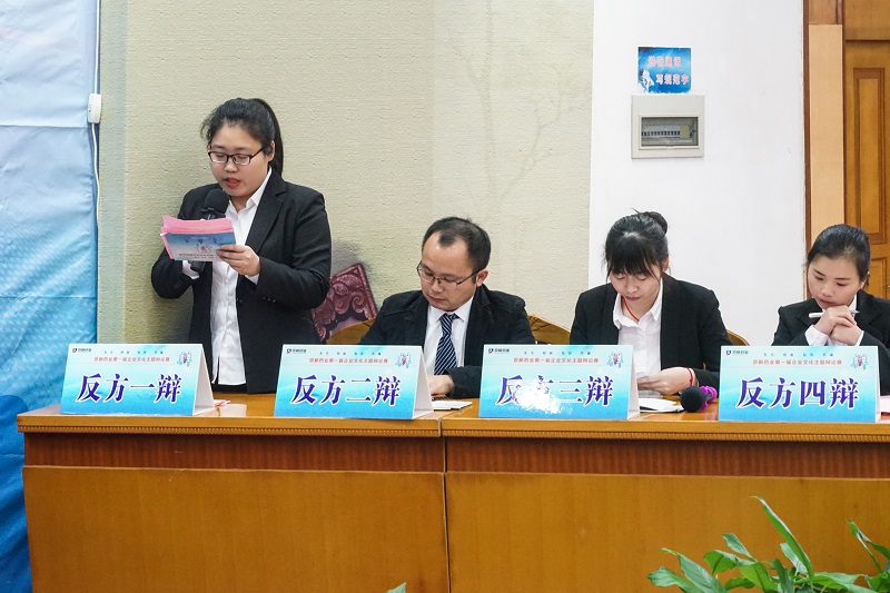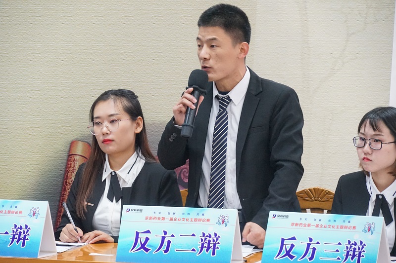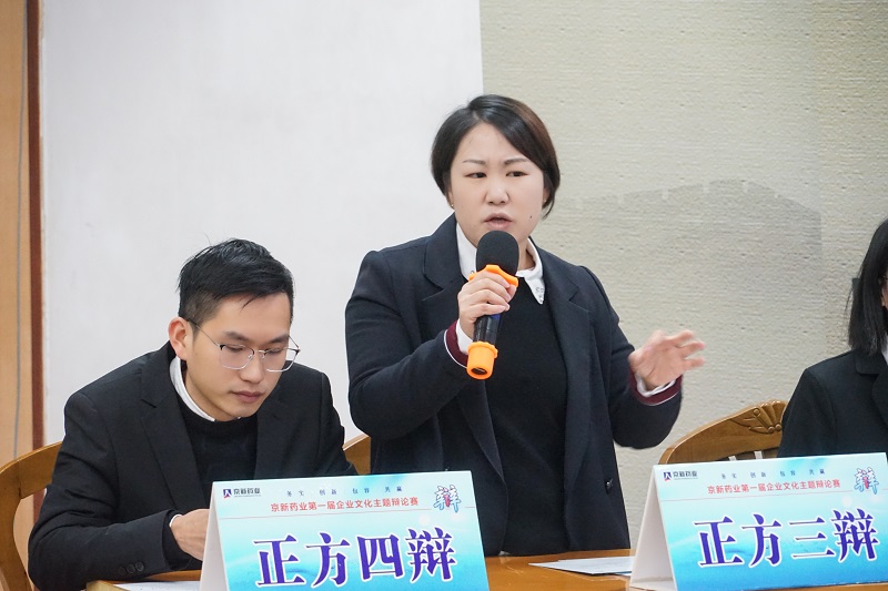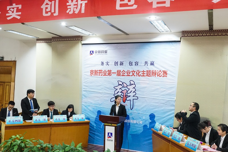 12月15日,京新藥業(yè)第一屆企業(yè)文化主題辯論賽半決賽如期舉行,經(jīng)過初賽、加賽的激烈角逐,四強(qiáng)隊(duì)伍脫穎而出,為我們呈現(xiàn)了一次更為精彩的思想碰撞。比賽特邀新昌中學(xué)原語文教學(xué)組組長(zhǎng)、資深語文教育專家潘國(guó)仁老師、新昌中學(xué)原語文教學(xué)組組長(zhǎng)、資深語文語言專家俞雅麗老師、新昌中學(xué)政教處副主任、政治老師王玉瑛、新昌中學(xué)語文老師梁珂菡及求旭麗、新昌中學(xué)政治老師張鳳珍、公司黨委副書記孔慶豐等領(lǐng)導(dǎo)出席并擔(dān)任評(píng)委,近200余員工現(xiàn)場(chǎng)觀戰(zhàn)。